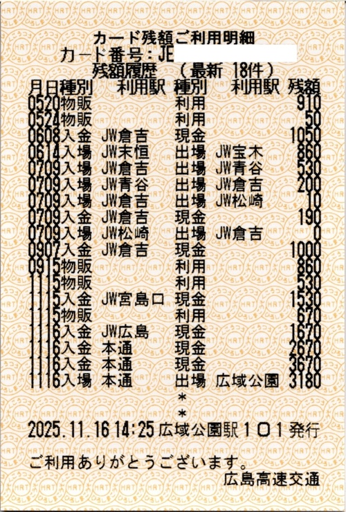 ![]() ICカードの履歴印字 |