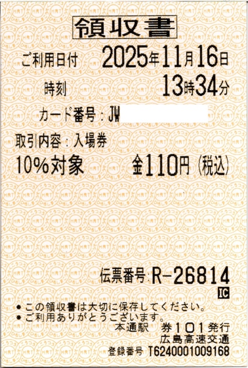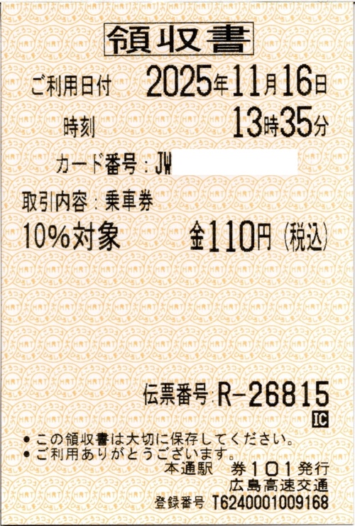![]() 乗車券購入の領収書 |