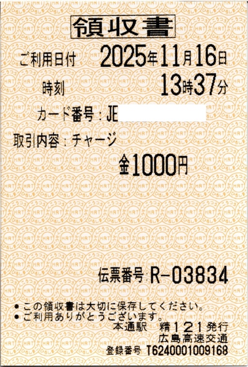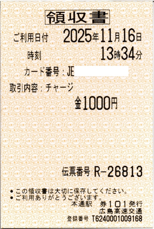 ![]() チャージの領収書 |